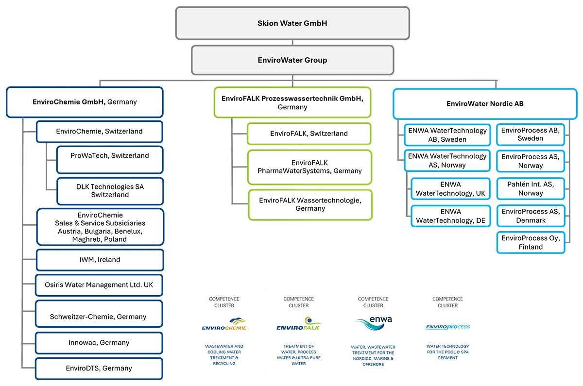 SKion Water unites a global group of water technology companies that provide water and wastewater treatment solutions. The EnviroWater Group consists of specialists in a wide range of water treatment technologies and sectors across Europe.
